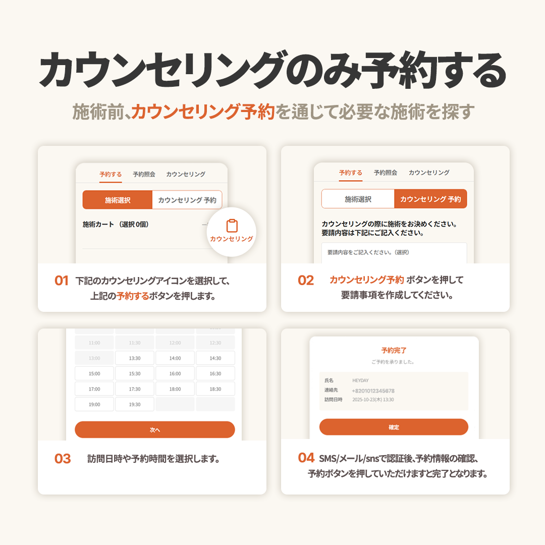 薬物服用及び疾患がある場合は一部の施術が制限されることがあります。
