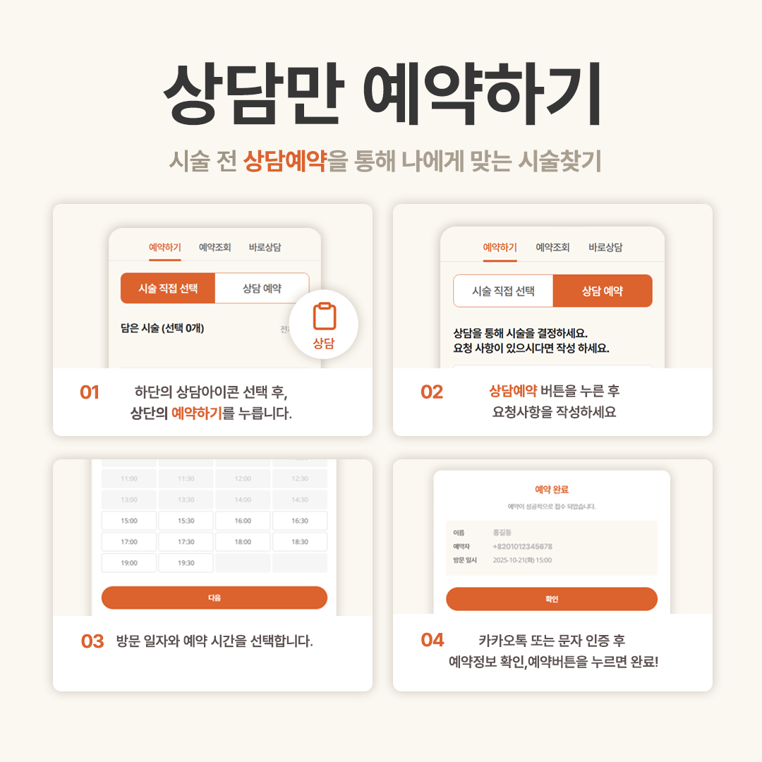 ▪ 임신·수유 중이거나 약물 복용·질환이 있는 경우 일부 시술이 제한 될 수 있습니다.